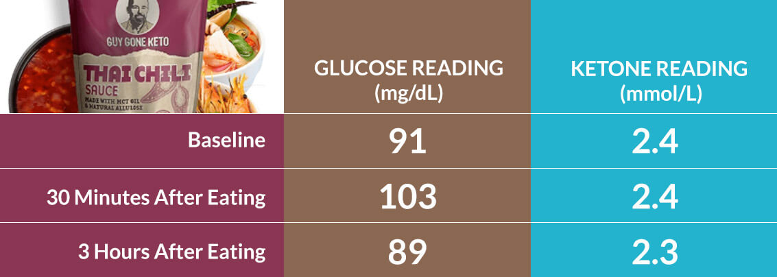 As you can see in the graph below, our ketones remained within 0.1-0.3 mmol of our preprandial ketone tests. Glucose test results were a bit more varied, although none of the sauces resulted in a drastic glucose spike and our glucose dropped down to preprandial levels in all cases. This is very good news for anyone who loves to dip meats into a sauce or reach for a convenient condiment.