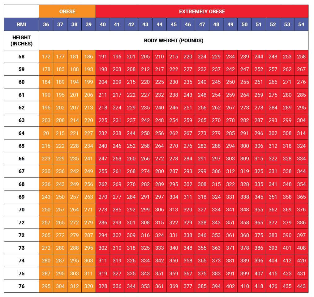 Body Mass Index Table 2 (for people with BMI greater than 35)